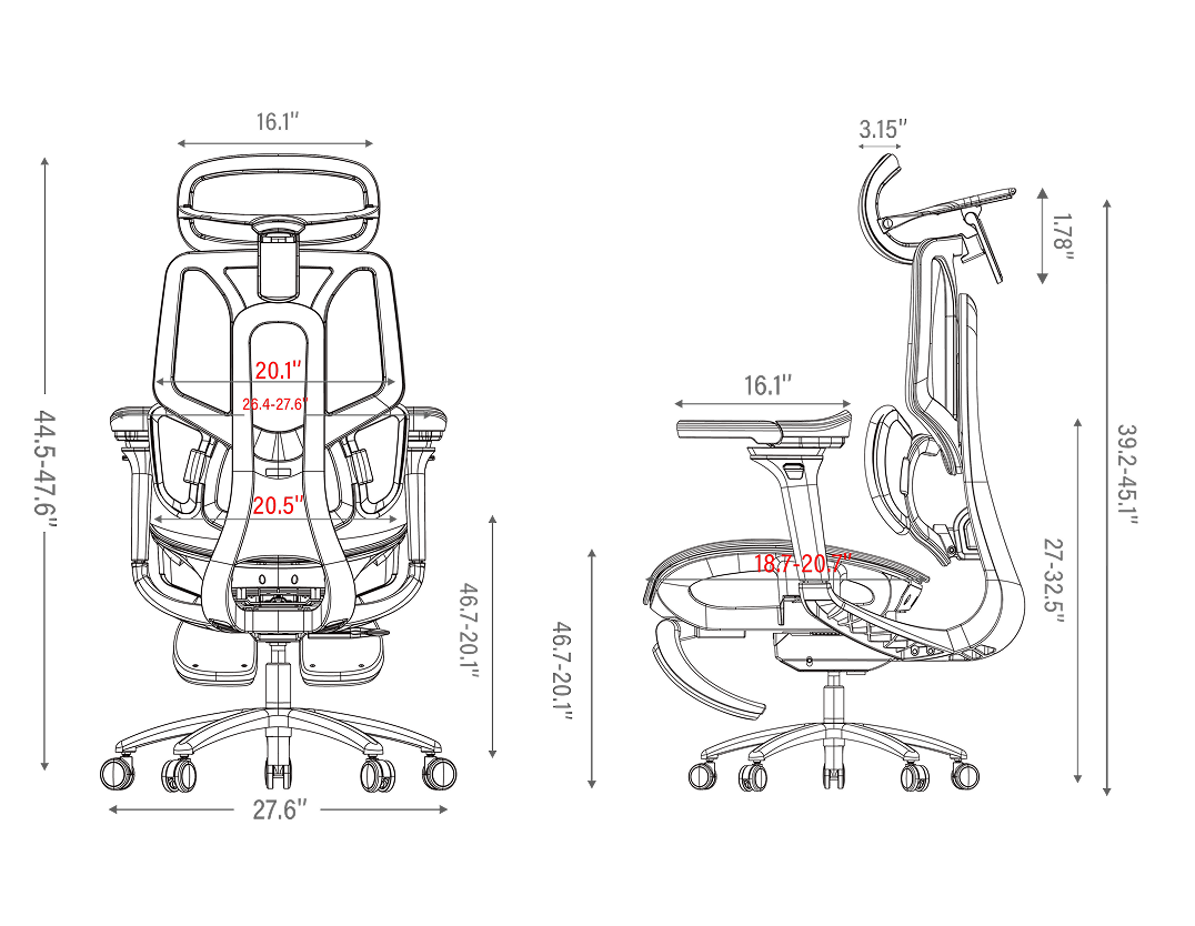 Leveraging HBADA's industry-leading user database developed from thousands of ergonomic test samples, the E3Pro lumbar support offers 8-way adjustments—forward/backward, up/down, tilt, and more—for a fully tailored fit. It achieves the optimal balance between support and comfort, providing firm yet gentle support while eliminating pressure points.